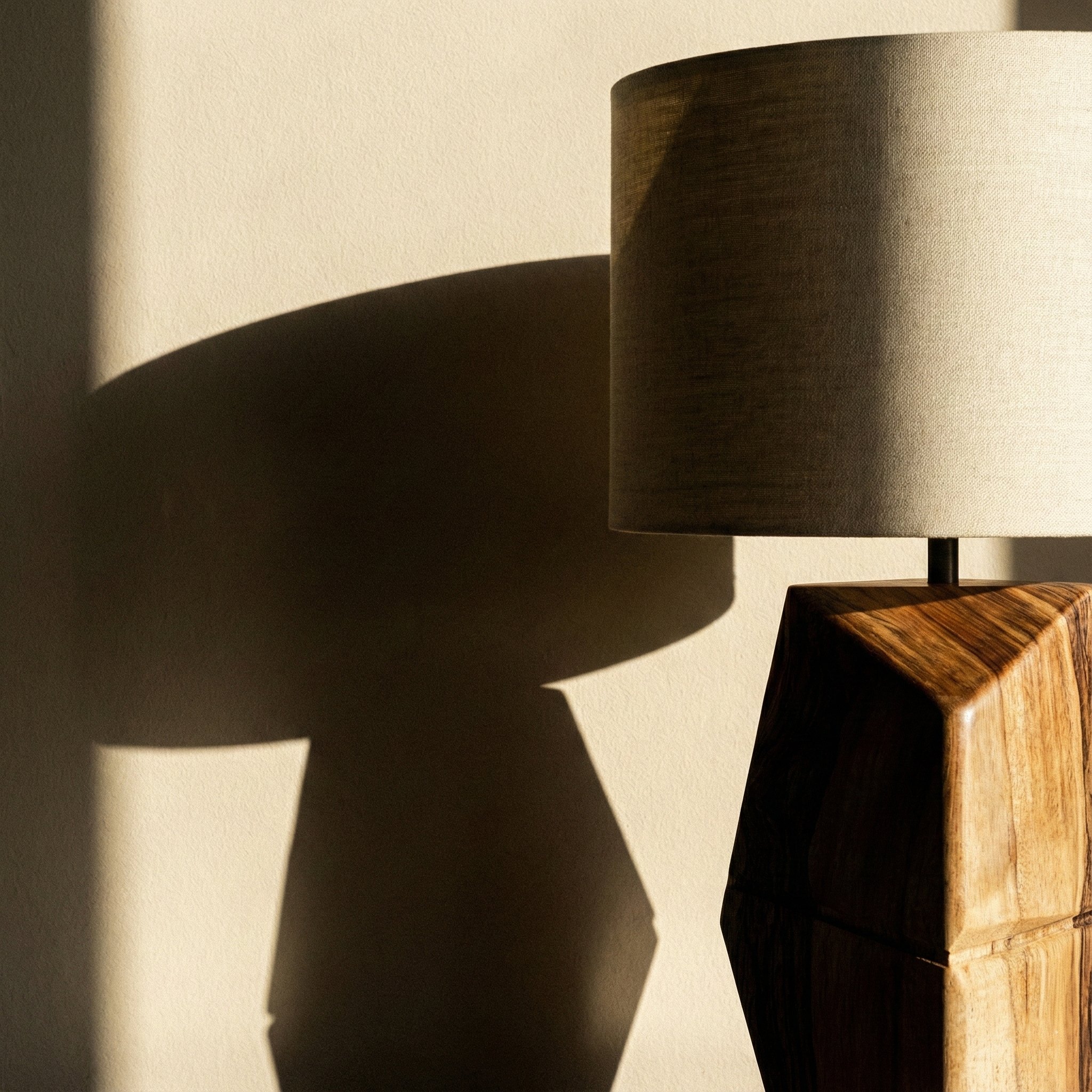 The Prism | Handcrafted Geometric Solid Wood Table Lamp with Linen Shade
